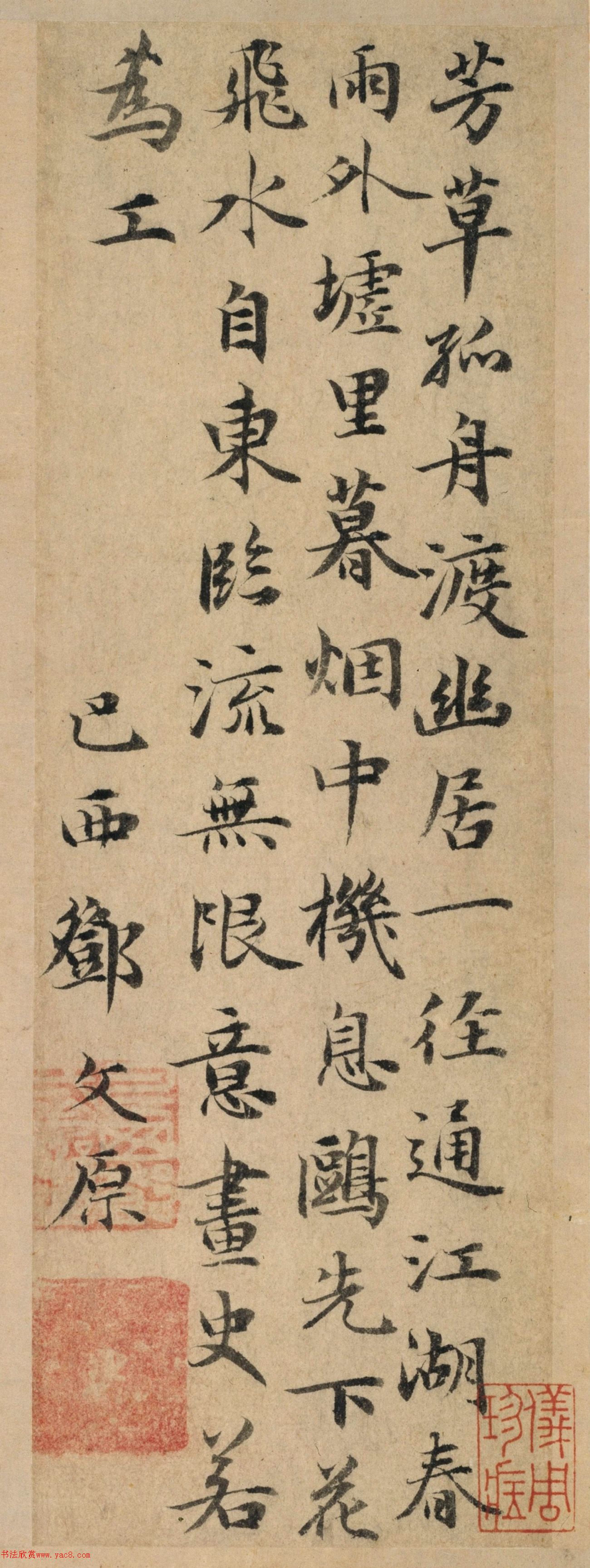 巴西邓文原书法欣赏《芳草帖》 2015/4/6 作者:书法欣赏 来源:www.yac8.com 阅读:7698 邓文原行楷书《芳草帖》,纵20.8厘米,横7厘米。北京故宫博物院藏。 邓文原(1258-1328),字善之,人称素履先生,四川绵州人,因绵州古属巴西郡,人称邓文原为“邓巴西”。 上一条 赵佶草书赏析《掠水燕翎纨扇》 下一条 湖南朱香安毛体书法作品三幅