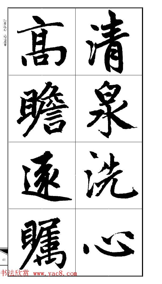 锦言精华--赵孟頫楷书大格集字帖(9) 2017/12/25 作者:书法欣赏 来源:www.yac8.com 阅读:125654 上一页跳页下一页该文章所属专题:赵孟頫书法 上一条 清代著名书法家王澍楷书墨迹《临九成宫》 下一条 颜真卿楷书字帖《颜体字书法要诀》