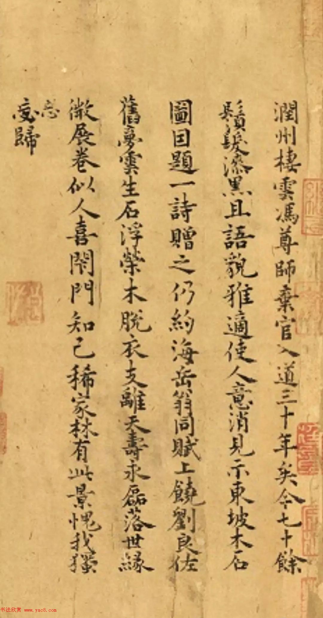 米芾行书题跋苏轼《枯木怪石图》 2018/9/3 作者:书法欣赏 来源:www.yac8.com 阅读:38416 苏轼《枯木怪石图》卷,27x543cm,日本阿部房次郎爽籁馆藏。 2018年8月30日,佳士得香港拍卖不仅宣布征集到这件极具传奇性的苏轼书画作品,并首次在公众面前展示《木石图》,预计成交价格将超过4亿港币。 题签:东坡枯木石图 苏轼《木石图》画心约为26x50cm,无款,前作枯木一株,树干扭屈,上出二枝,树根小草,作随风披拂状,中间较大者,上偃如巨然法,树后巨石。 上饶刘良佐跋文 俞希鲁跋文 郭淐跋文 上一页跳页下一页该文章所属专题:米芾书法 上一条 米芾行书刻本《寄薛郎中绍彭》 下一条 苏东坡43岁大字楷书《表忠观碑帖》