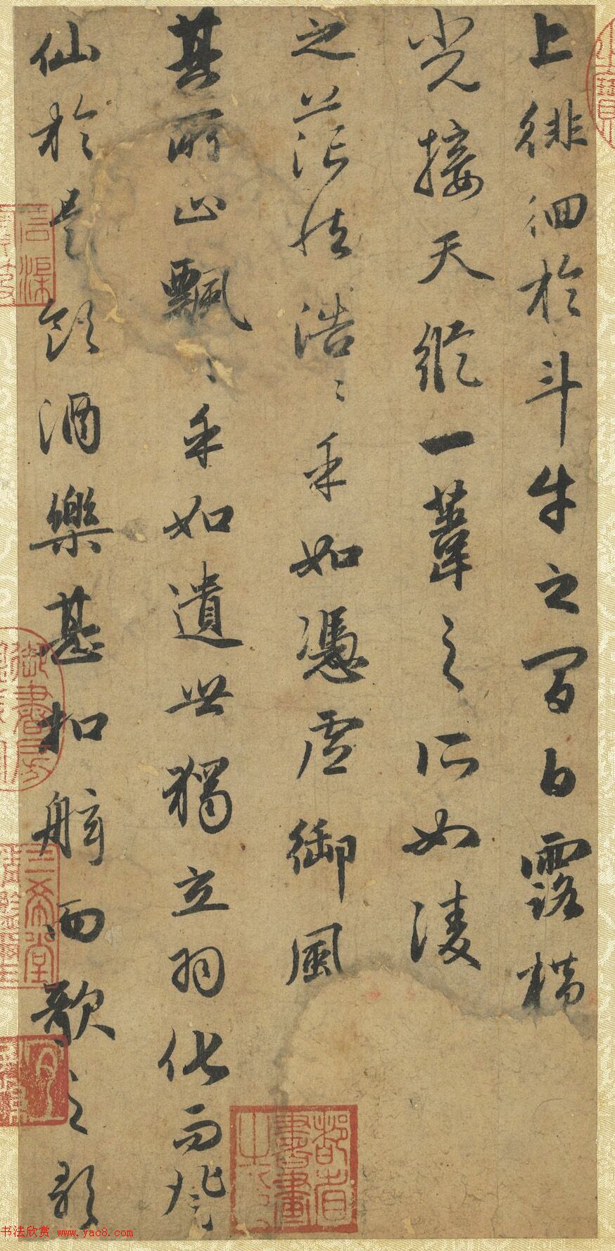 赵孟頫书前后赤壁赋册(无纪年残本)(2) 2022/7/7 作者:书法欣赏 来源:www.yac8.com 阅读:12074 后赤壁赋。是岁十月之望,步自雪堂,将归于临皋。二客从予过黄泥之坂。霜露既降,木叶尽脱。人影在地,仰见明月,顾而乐之,行歌相答......开户视之,不见其处。子昂。 局部大图 声明:以上资料转自台北故宫官网仅供学习参考,本站并不能保证作品的真实性。 上一页跳页下一页该文章所属专题:赵孟頫书法 上一条 欧阳询楷书《皇甫君碑》翻刻本 下一条 赵孟頫54岁楷书《宝云寺记》(子昂碑)
