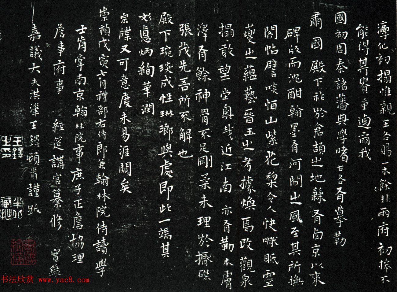 王铎楷书《跋明肃府本淳化阁帖》 2022/3/14 作者:书法欣赏 来源:www.yac8.com 阅读:3610 王铎(1592~1652),字觉斯,一字觉之,号嵩樵、十樵、石樵、痴庵、东皋长、痴庵道人、雪山道人、二室山人、白雪道人、云岩漫士、嵩淙道人、雷塘渔隐、兰台外史、烟潭渔叟、痴仙道人等,洛阳孟津(今河南孟津)人,明天启二年(1622)进士,官至南京礼部尚书。又为南明小朝廷的东阁大学士。1645年南京被破降清,顺治间官授礼部尚书,加太子太保。 王铎楷书《跋明肃府本淳化阁帖》 淳化初拓,惟亲王各赐一本……我国初、周秦诸藩,典学嗜古,各有摹勒。 王铎顿首谨跋 该文章所属专题:王铎书法 上一条 沈度书法题马麟写生蝴蝶花卉图卷 下一条 朱彝尊、蓝涟隶书题李煦行乐图