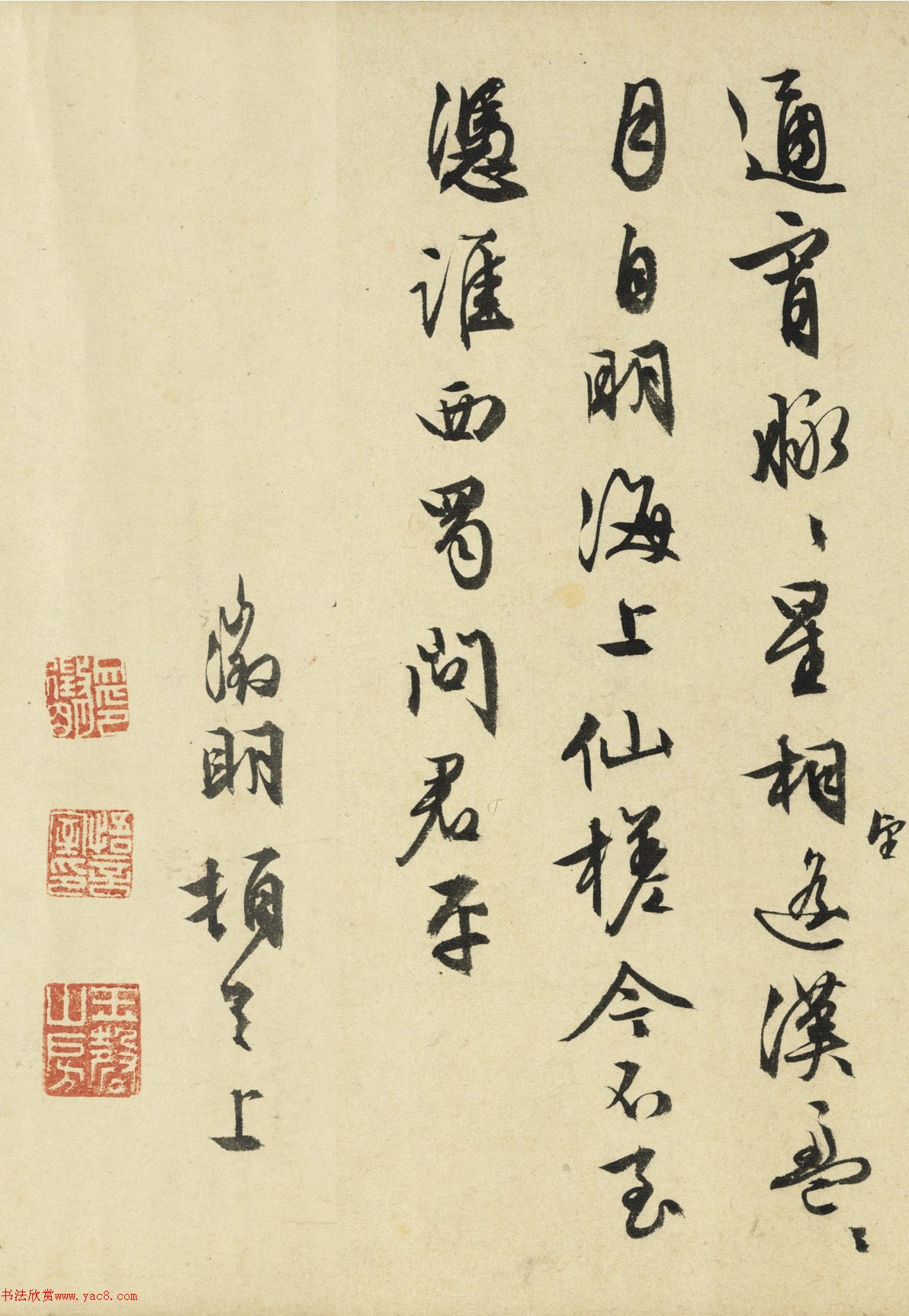 文徵明、文嘉书法作品《七夕》 2023/8/22 作者:书法欣赏 来源:www.yac8.com 阅读:3462 文徵明、文嘉父子二人的《七夕》书法作品欣赏 文徵明行書《七夕》,来源:明文徵明疏林淺水圖卷拖尾,臺北故宮博物院藏。 釋文:七夕。似聞今夕女牛并。設果陳瓜待巧成。老我此生日抱拙。天孫何事卻多情。通宵脈脈星相望。遙漢盈盈月自明。海上仙槎今不至。憑誰西蜀問君平。 文徵明行书《七夕》,来源:文徵明行书杂诗卷,北京荣宝2021春拍。 【七夕】家人竞说女牛并,设果陈瓜待巧成。老我此生甘抱拙,天孙何事却多情。通宵脉脉星相望,遥汉盈盈月自明。海上仙槎今不至,凭谁西蜀问君平? 上一页跳页下一页该文章所属专题:文徵明书法 上一条 祝允明草书杜甫秋兴诗轴2幅 下一条 赵之谦行楷书长卷《为季闻录旧作》