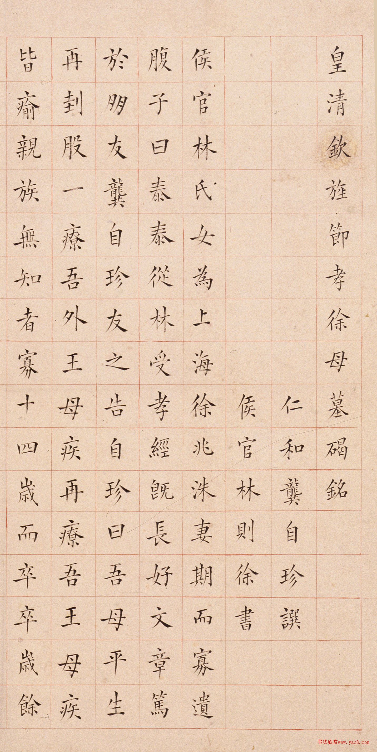 林则徐楷书《徐母墓碣铭》 2024/6/24 作者:书法欣赏 来源:www.yac8.com 阅读:1308 林则徐楷书徐母墓碣铭轴,上海博物馆藏。 皇清钦旌节孝徐母墓碣铭。仁和龚自珍撰,候官林则徐书。 上一条 朱次琦行书《朱赠公墓志铭》 下一条 状元吴宽楷书《朱夏墓表》册