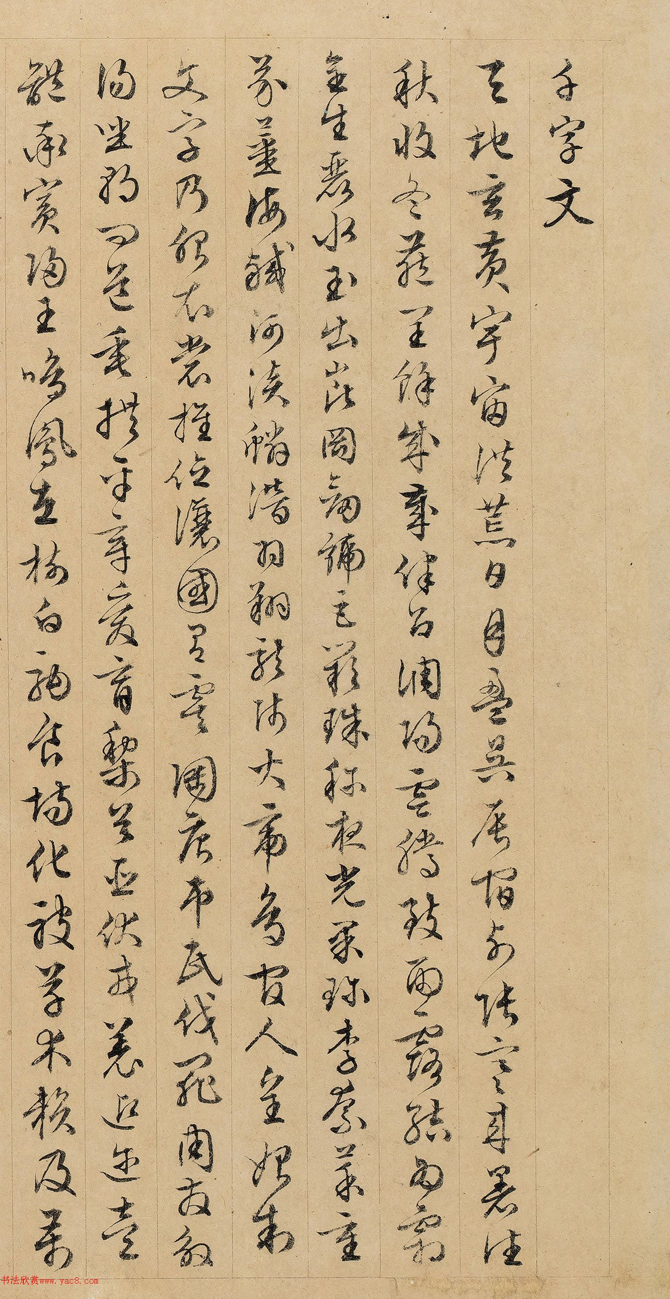 文徵明75岁草书《千字文》 2025/8/23 作者:书法欣赏 来源:www.yac8.com 阅读:886 文徵明草书千字文,来源:文衡山先生真草隸篆四體千字文卷,北山堂惠贈,香港中文大學文物館藏。 上一页跳页下一页该文章所属专题:文徵明书法 上一条 何绍基楷书《李广传》 下一条 何绍基行书册页《画记》