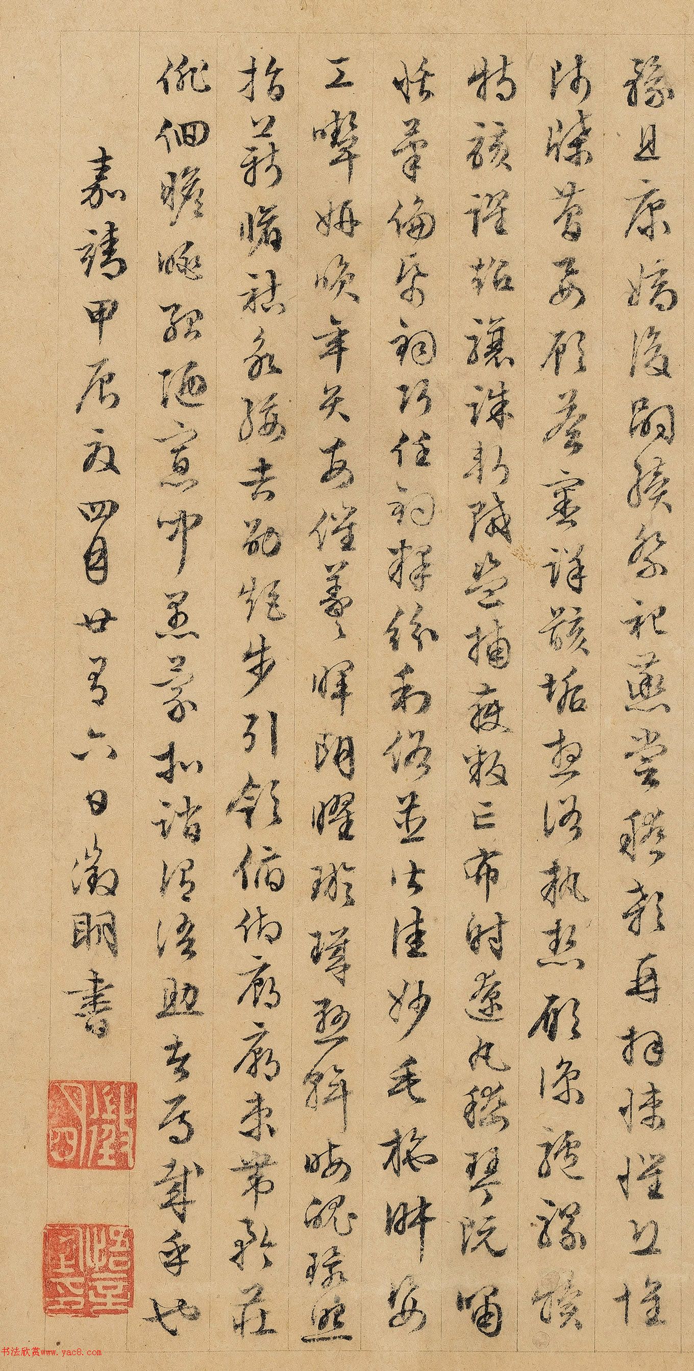 文徵明75岁草书《千字文》(2) 2025/8/23 作者:书法欣赏 来源:www.yac8.com 阅读:886 嘉靖甲辰(1544年)夏四月廿有六日徵明书 声明:以上作品仅供学习参考,本站并不能保证作品的真实性。 上一页跳页下一页该文章所属专题:文徵明书法 上一条 何绍基楷书《李广传》 下一条 何绍基行书册页《画记》