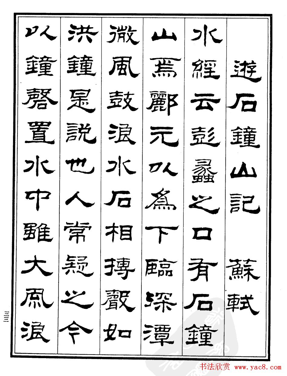 刘炳森隶书字帖欣赏《游石钟山记》 2013/3/3 作者:书法欣赏 来源:yac8.com 阅读:39422 刘炳森隶书字帖欣赏历代游记《游石钟山记》书法作品图片9张 上一页跳页下一页该文章所属专题:刘炳森书法 上一条 刘炳森字帖欣赏隶书《游褒禅山记》 下一条 席夔书法字帖欣赏《隶书千字文》