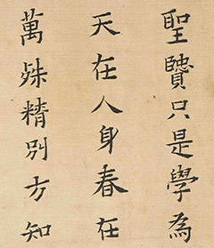 唐代欧阳询书中楷《皇帝阴符经上中下三篇》清代翻刻版,徐州博物馆藏。 欧阳询中楷《皇帝阴符经》原碑下落不明,清代杨映权偶得一拓本,并请石工高手翻刻,虽是翻刻,却笔意刚劲,法式严谨,亦属难得精彩之作。贞观五年孟春之月既望又六日,勃海男臣欧阳询奉敕书。...