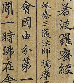 元 赵孟頫书《金刚般若波罗蜜经》册,残首尾,释明本记。洪武八年杭州徐道圆募捐翻刻至大四年本,日本宫内厅藏。《金刚经》为佛教的重要经典,赵孟頫抄写的《金刚经》版本在民间尤为盛行。当时的佛教寺院和信徒们纷纷出资刊印,以祈求保佑和功德。...