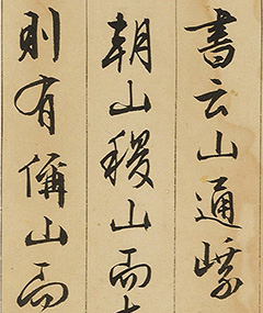 明 董其昌行草书自跋荆溪招隐图卷,大都会艺术博物馆藏。释文:此余辛亥岁为澈如光禄作也,今年予自田间被征与澈如同一启事。予既已誓墓不出,而澈如亦意在鸿冥。余举赠友人诗,题此卷曰:我如远山云,君如朝日暾。出处各有宜,何必鹤与猿。惟容避世者,终老桃花源。澈如携此游江门,时以...