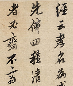 清張照節書傳燈錄冊,22.8x16公分,九開十八幅,台北故宫博物院藏。釋文:文殊問無著。近離甚處。著云南方。殊云南方佛法如何多少。著云或三百或五百著問此間如何住持。殊云聖凡同居。龍蛇混雜。著云多少眾。殊云前三三後三三。雪竇顯頌曰。千峰盤屈色如藍。誰謂文殊是對談。堪笑清涼多少眾。前...