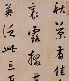 传世名帖:王献之草书手卷《中秋帖》纸本,北京故宫博物院藏。传为晋王献之书,纵27cm,横11.9cm。《中秋帖》是著名的古代书法作品,曾被清高宗弘历(乾隆皇帝)誉为“三希”之一,意即希世珍宝。行书3行,共22字,无署款。《中秋帖》是《宝晋斋法帖》、《十二月割帖》的不完全临本,原帖在“中秋”...