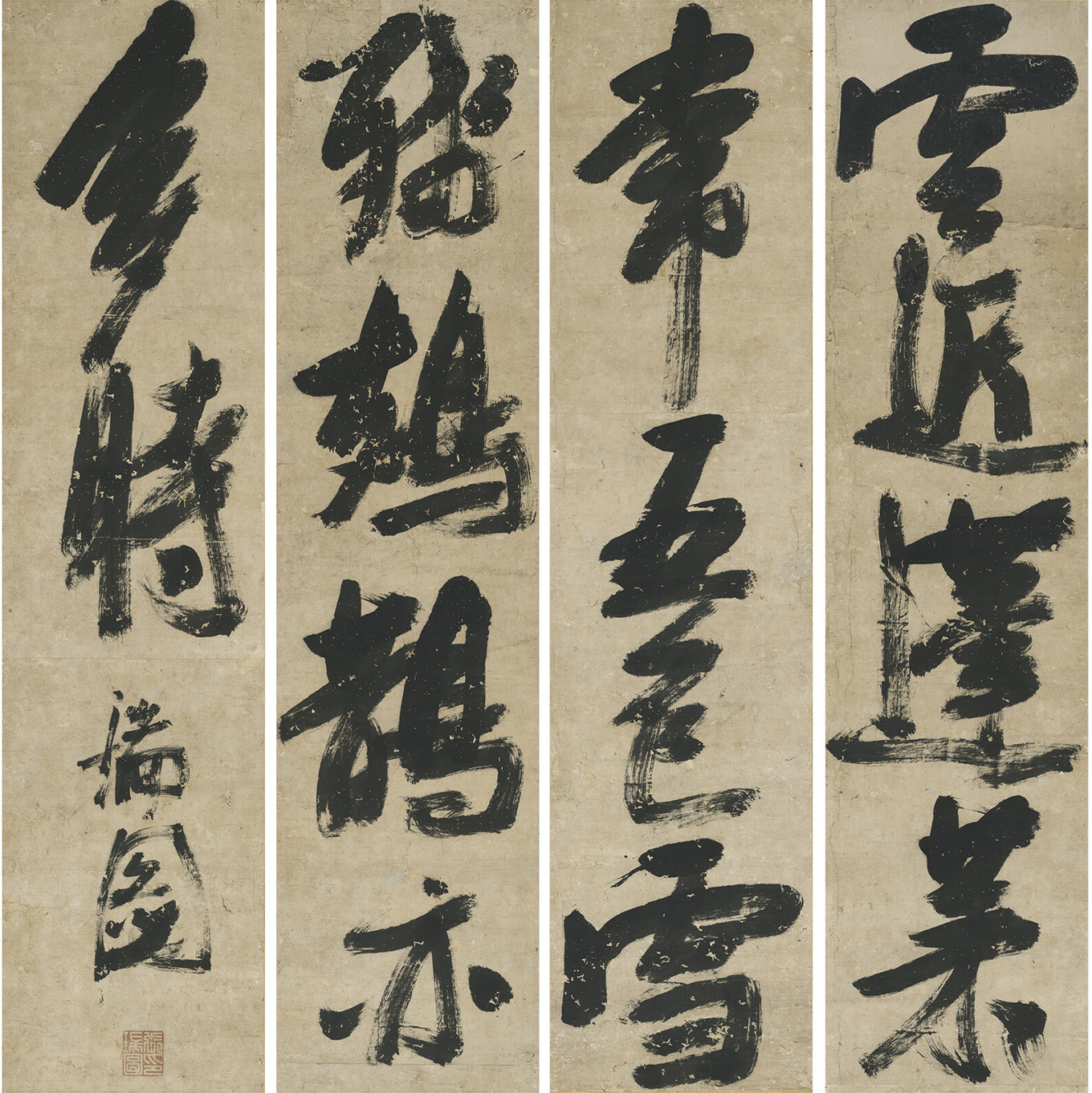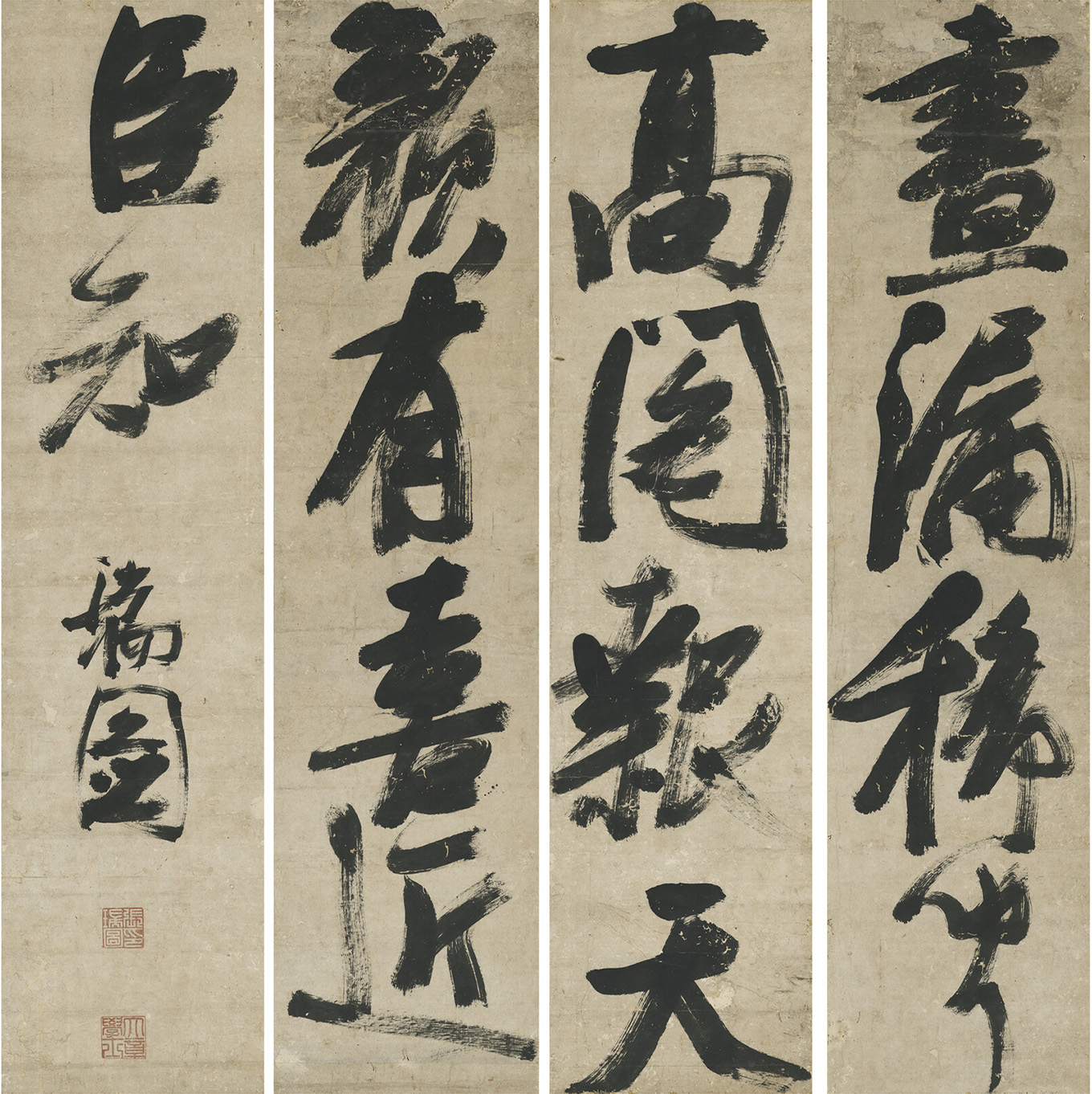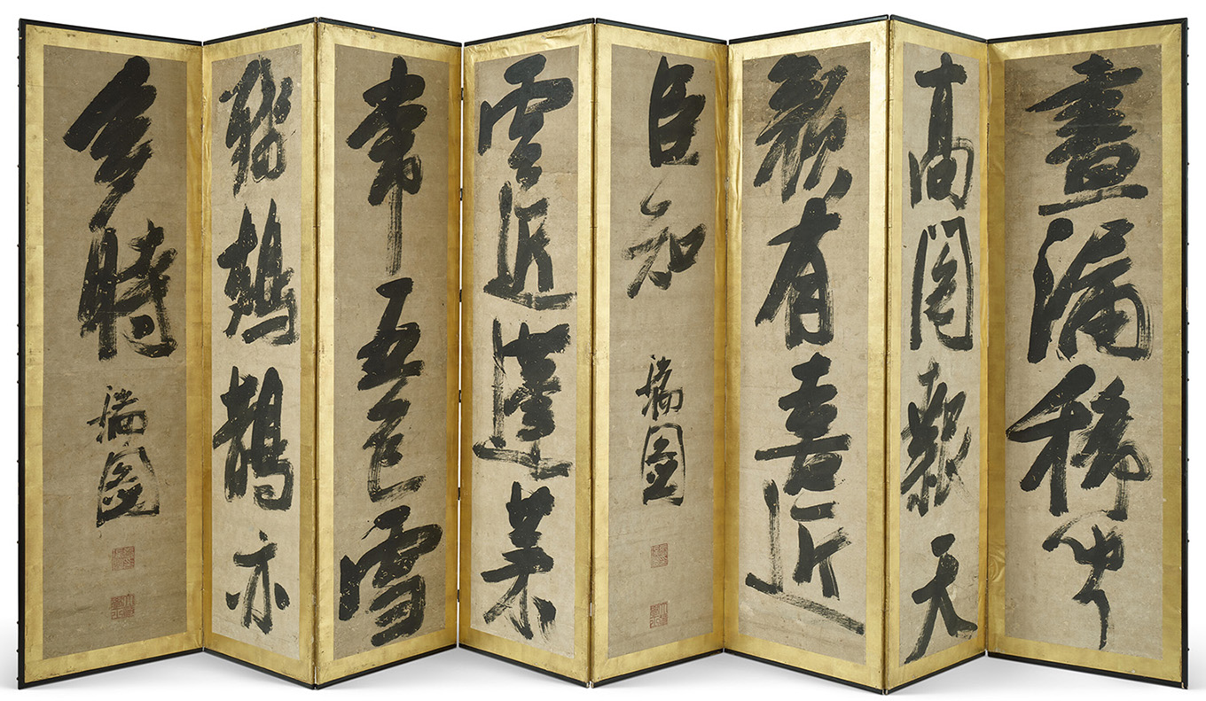 张瑞图杜甫诗句屏风成交价378万港元 2025/5/24 作者:书法欣赏 来源:www.yac8.com 阅读:422 張瑞圖杜甫詩句屏風,水墨紙本,八折屏風,每幅169.5x40.3cm,2025佳士得拍賣,成交價港元 3,780,000 釋文:晝漏稀聞高閣報,天顏有喜近臣知。雲近蓬萊常五色,雪殘鳷鵲亦多時。 款識:瑞圖。 声明:以上拍卖作品仅供学习参考,本站并不能保证作品的真实性。 该文章所属专题:张瑞图书法 上一条 文徵明(款)小楷玉台新咏册 下一条 赵之谦行书四屏成交价106万港元