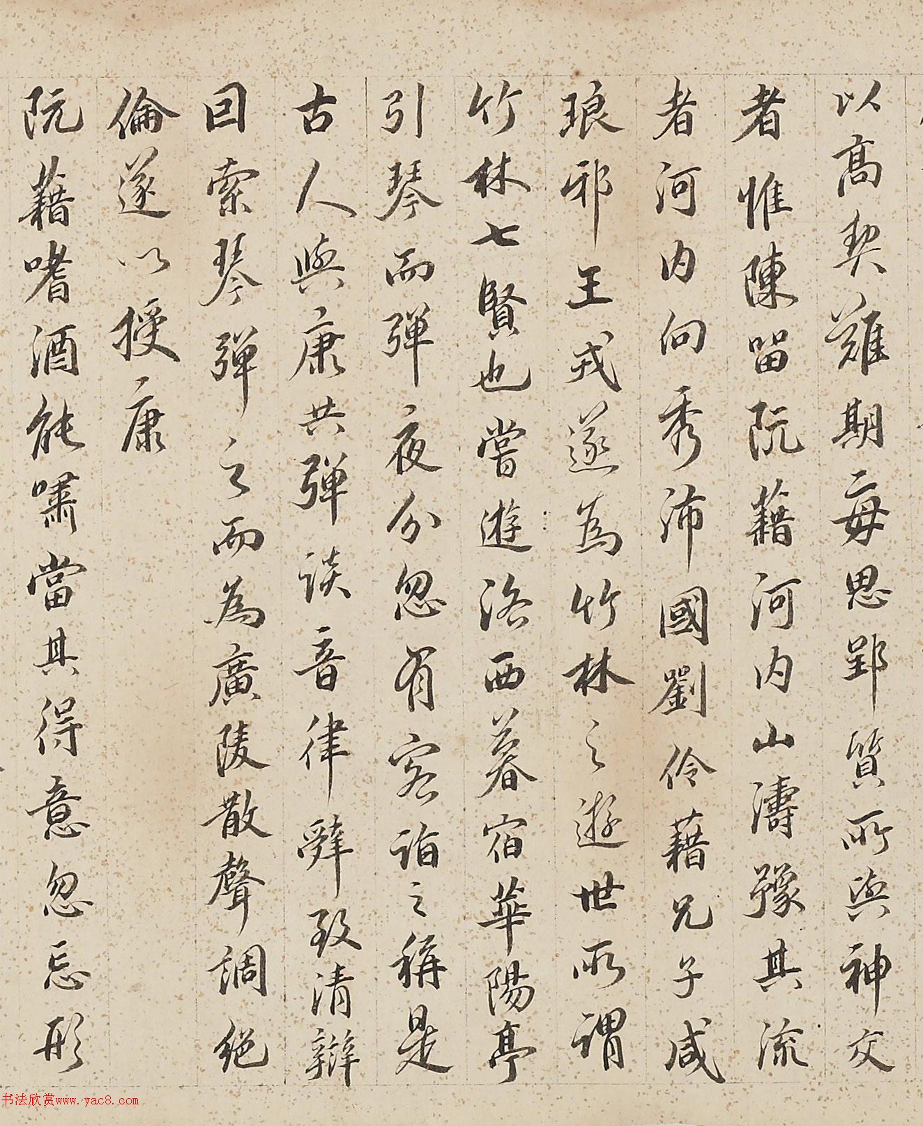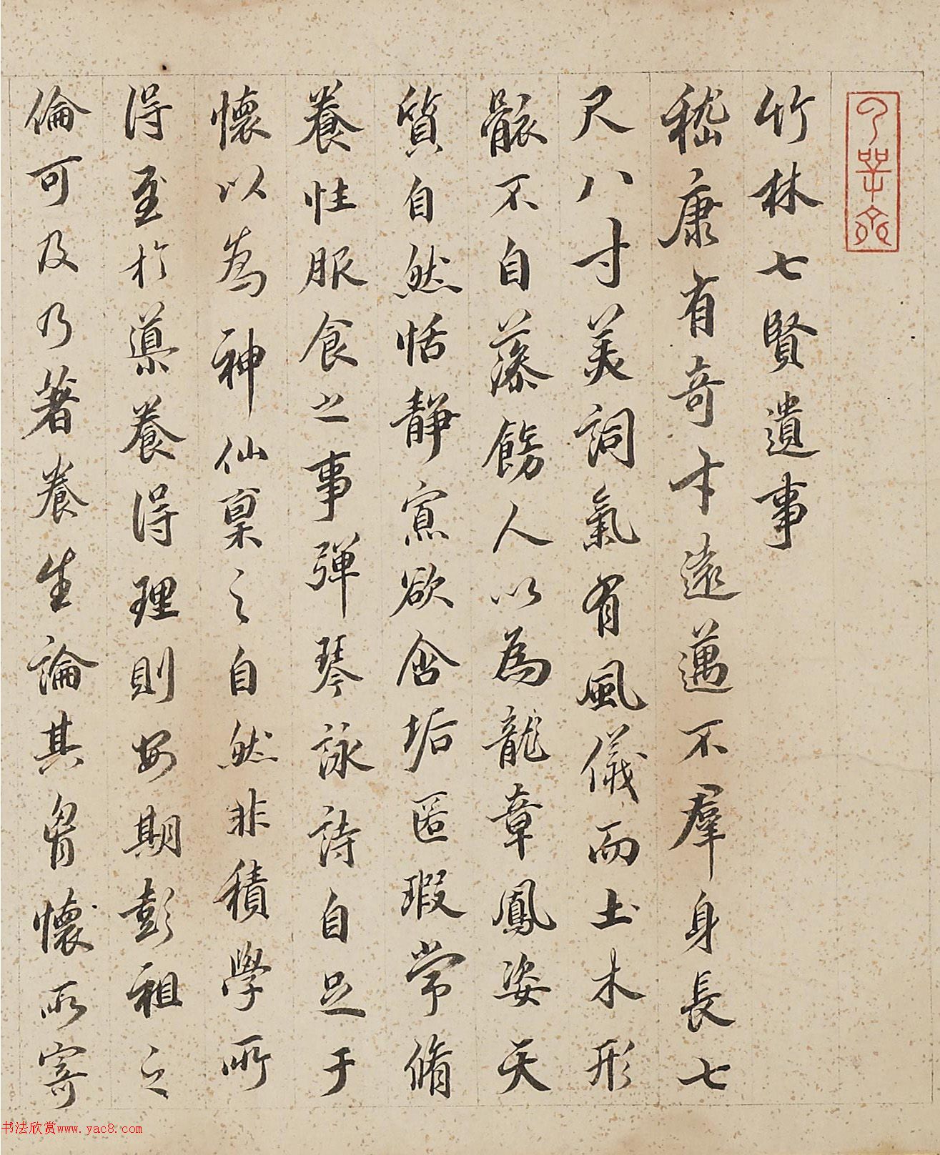周嘉胄行书《竹林七贤遗事》 2025/7/17 作者:书法欣赏 来源:www.yac8.com 阅读:948 周嘉胄《竹林七賢遺事》,資料來源:財團法人何創時書法藝術文教基金會。 周嘉胄(1582-1658),江蘇揚州人。字叔休,號江左。明朝收藏家,擅長裝裱等工藝,著有《香乘》一書。周嘉冑於順治中寓居江寧,順治十四年(1657年)與盛胤昌等稱「金陵三老」,時年七十六。 上一页跳页下一页 上一条 杨维桢67岁行书城南唱和诗帖 下一条 王铎56岁草书叔甘淡马浴洞作一首诗卷