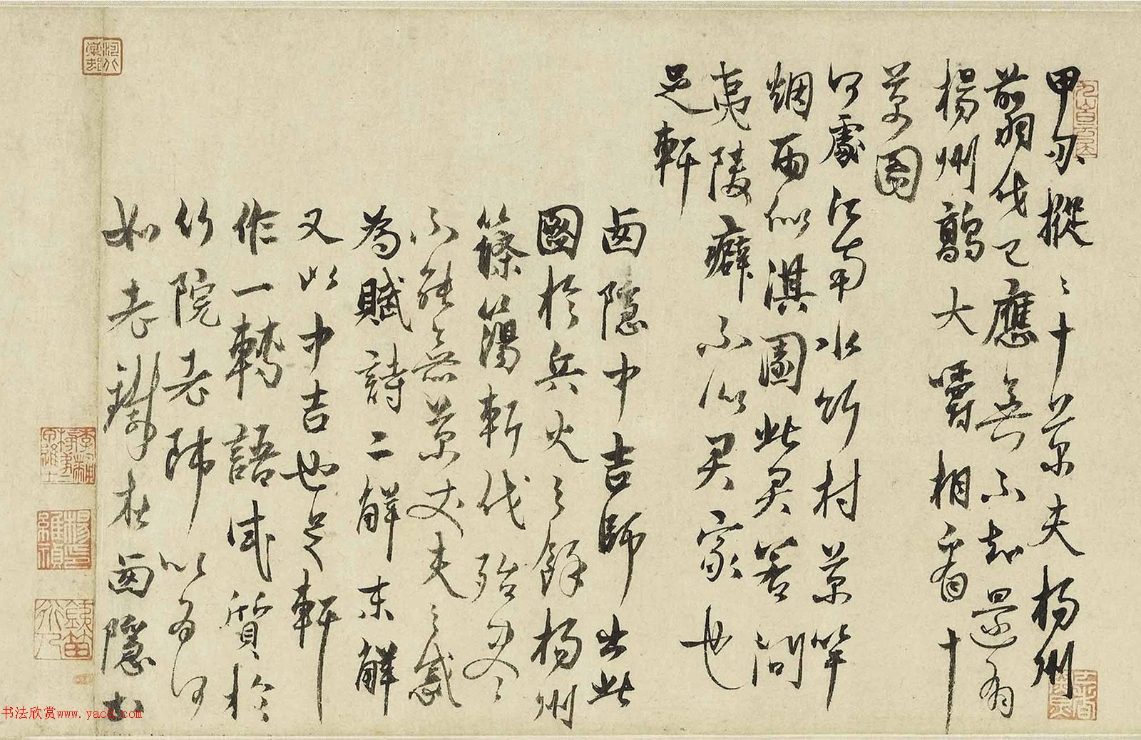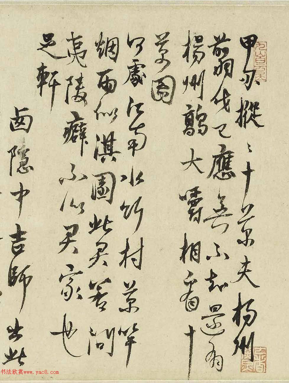 杨维桢行书题赵葵杜甫诗意图卷 2025/7/19 作者:书法欣赏 来源:www.yac8.com 阅读:402 杨维桢(1296-1370)又作祯,字廉夫,号铁崖,别号东维子、抱遗老人、铁笛道人,老铁贞、梅花道人等,诸暨枫桥人(今浙江绍兴)。著名文学家、书法家。 元代杨维祯行书题南宋赵葵杜甫诗意图卷,纵24.7厘米,上海博物馆藏。 老铁在西隐书 上一条 祝允明行书跋徐熙花卉草虫卷 下一条 文徵明行书跋黄庭坚伏波神祠诗卷