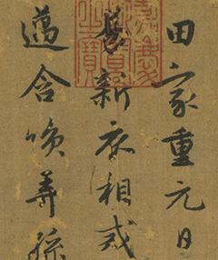 王宠行书《初八日湾中开船》,台北故宫博物院藏。前隔水 東海郡崑崙子家藏釋文:初八日灣中開船。至十一日已到天津。王進士忠厚人也。好相處。王與唐會元乃翁親家也。唐公至天津喪妻。即會元之母。當泊舟。此間想須少待之。即同發舟矣。兩日風雨悽然。殊有愁思。不似六月。未知前路何如耳。相...